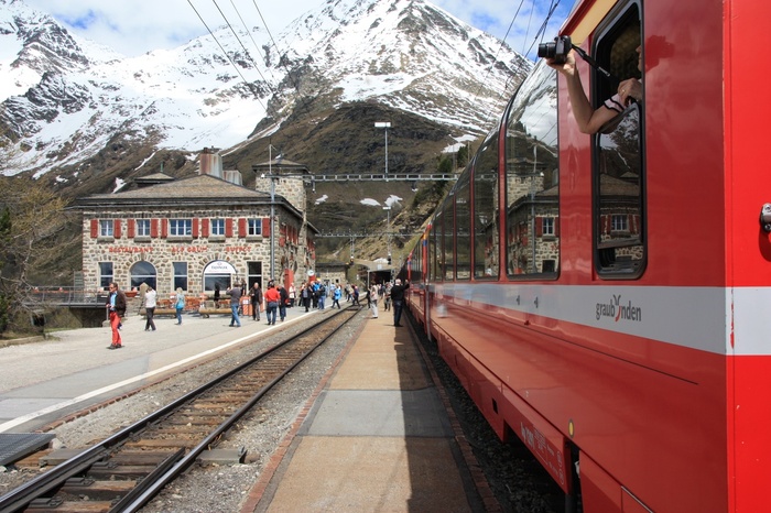 Pedida de mano en el Bernina Express en el Alp Grüm