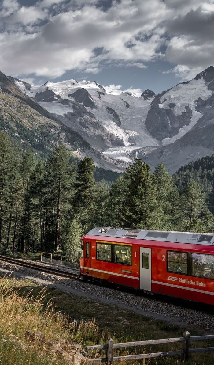 Convierte un viaje en tren en un recuerdo inolvidable con una pedida de mano en el Bernina Express con parada en el Alp Grüm, uno de los puntos panorámicos más espectaculares de todo el recorrido. Desde este lugar privilegiado, podréis contemplar el glaciar Palü al fondo, rodeados de montañas majestuosas y valles profundos que parecen sacados de un cuento de hadas.