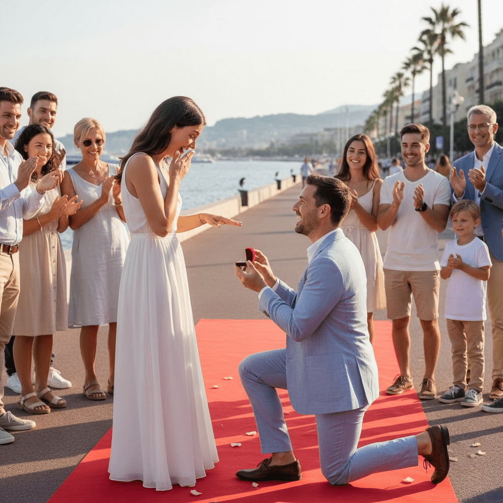 Por todo ello, elegir una pedida de mano en la Riviera Francesa con alfombra roja en Cannes es apostar por un momento extraordinario en uno de los destinos más románticos y elegantes del mundo. Es convertir el amor en protagonista y comenzar una nueva etapa caminando juntos sobre una alfombra roja que simboliza un futuro compartido.