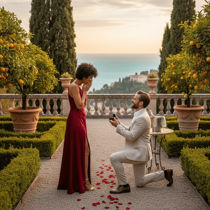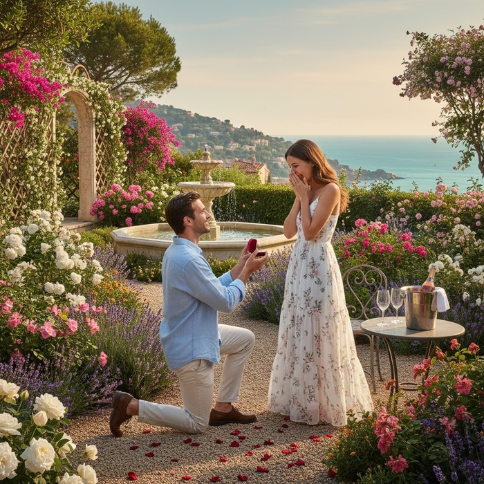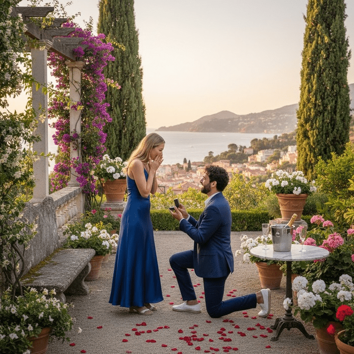 Por eso, elegir una pedida de mano en la Riviera Francesa en un jardín exótico es ideal para parejas amantes de la naturaleza, la tranquilidad y los escenarios poco convencionales. Es una forma de celebrar el amor lejos del bullicio, en un espacio donde cada rincón invita a soñar. Este tipo de pedida no solo marca un compromiso, sino que crea un recuerdo eterno, lleno de belleza, sensibilidad y la magia incomparable de la Riviera Francesa.