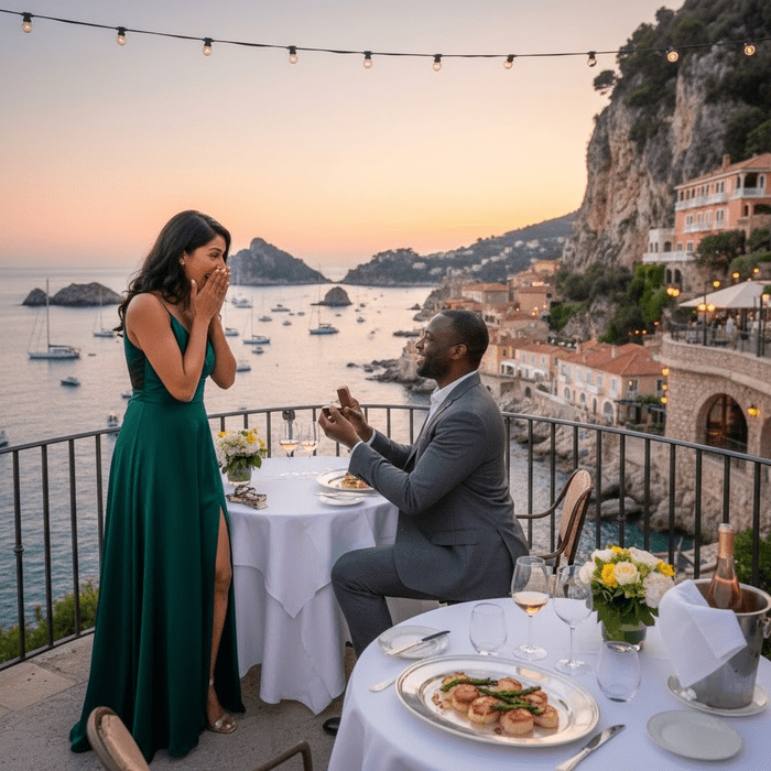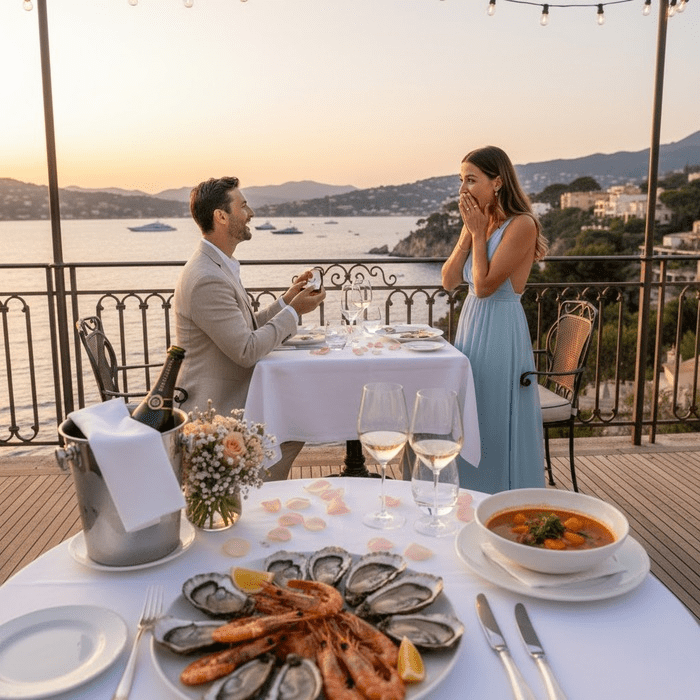 Pedida de mano en la Riviera Francesa en un restaurante con vistas: ¡celebra el amor a lo grande!